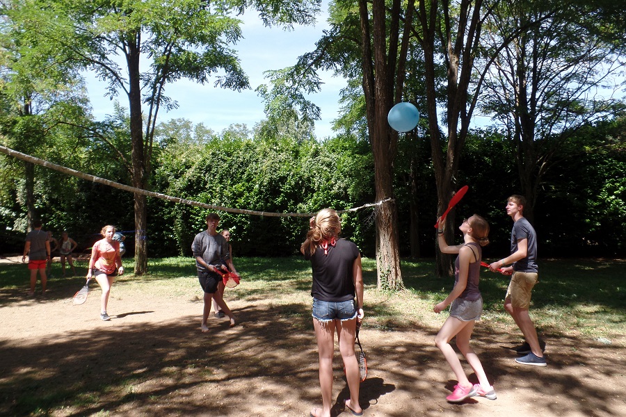 Heute ging es das erste Mal in die Kanus, um für unsere 2-Tages-Tour die grundlegenden Basics zu sichern. In 4 zeitversetzten Gruppen erklärte uns ein Kanu-Guide verschiedene Wende, – Geschwindigkeits – und Schlagtechniken. Danach durften alle die theoretisch erklärten Aspekte praktisch ausprobieren und sich mit dem Gewässer anfreunden. Nach dem Mittagssnack konnten die Übungskanus noch weiter genutzt und selbstständig der Wildwasserfluss erkundet werden, bevor es bei der Mini- Olympiade noch weiter sportlich wurde. Spiele wie Mikado, Balancieren auf einer Slackline, Luftballon-Tennis oder ein sehr amüsantes „Wasserpistolen-Becher-Ziel-Schießen“ waren die Herausforderungen für den Nachmittag. Anschließend spielten einige JOTOS Karten im gemeinsamen Camp oder sonnten sich an der Adèche und kühlten sich auch zwischenzeitlich im Fluss ab. Das Thermometer zeigte 34 Grad auf der Anzeige. Zu Abend wurde der Hunger mit Gyros & selbstgemachtem Zatziki, gegrilltem Gemüse, Reis und mit einem griechischen Honig-Joghurt -serviert mit Walnüssen- gestillt. Abends um 21:00 Uhr wurde dann „Mein Flamingo kann“ mit Showmaster Dennis gespielt. Vier Gruppen, darunter auch eine Betreuer-Gruppe, spielten gegeneinander und mussten jeweils einen aus der Gruppe nominieren. Nachdem das konkrete Spiel erklärt wurde, musste jede Gruppe auf ihre Person setzen und sich so gegenseitig battlen (z.B. wie viele Situps schafft eure Person?).