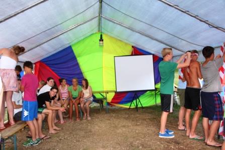 Am Nachmittag waren alle wieder im Camp versammelt und versuchten dem Regen zu trotzen, indem Gesellschaftsspiele gespielt wurden.