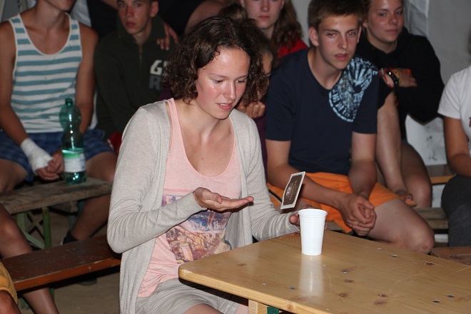 Wieder im Camp angekommen wurden die Teilnehmer und Betreuer mit Knicklichtern ausgestattet und tanzten die Choreografie in der Dunkelheit. Den Abschluss des Festes bildete die Powerpoint – Karaoke, bei der jemand einen Vortrag halten musste,ohne vorher das Thema zu wissen. So musste spontan auf die einzelnen Folien reagiert werden und Lachkrämpfe waren vorprogrammiert.