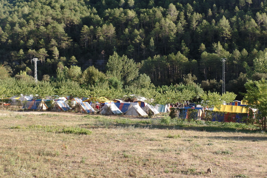 Heute stand der Wechseltag ins andere Camp an. Erfahrungsgemäß ein sehr aufregender, aber auch für alle Beteiligten recht anstrengender Tag. Bereits um 7.15 zogen die männlichen Betreuer als „Kantinenband“ mit Töpfen und Kellen durch das Lager und läuteten dadurch wortwörtlich das Aufstehen ein. Neben einem verfrühten Frühstück mussten alle Koffer gepackt und die Zelte genau so sauber verlassen werden, wie sie vor einer Woche vorgefunden wurden. Punktgenau war das ganze Lager geräumt und die Campmitarbeiter konnten unsere Koffer komplett verpacken und zum Bus bringen. Durchaus mit ein bisschen Abschiedsschmerz verabschiedeten sich alle von der Muga, den Bergen etc. und zogen zu Fuß los. Nach ca. eineinhalb Stunden Busfahrt erreichten wir unser neues Camp am Meer. Wie immer folgte erst die Zeltabnahme durch den Mitarbeiter des Reiseverantsalters, bevor die Jugendlichen ihre Zelte beziehen konnten. Im Gegensatz zum Bergcamp bestehen die Zelte hier aus zwei getrennten Schlafkabinen und jeder Menge Platz für die Koffer, sodass alle sich schnell einlebten.