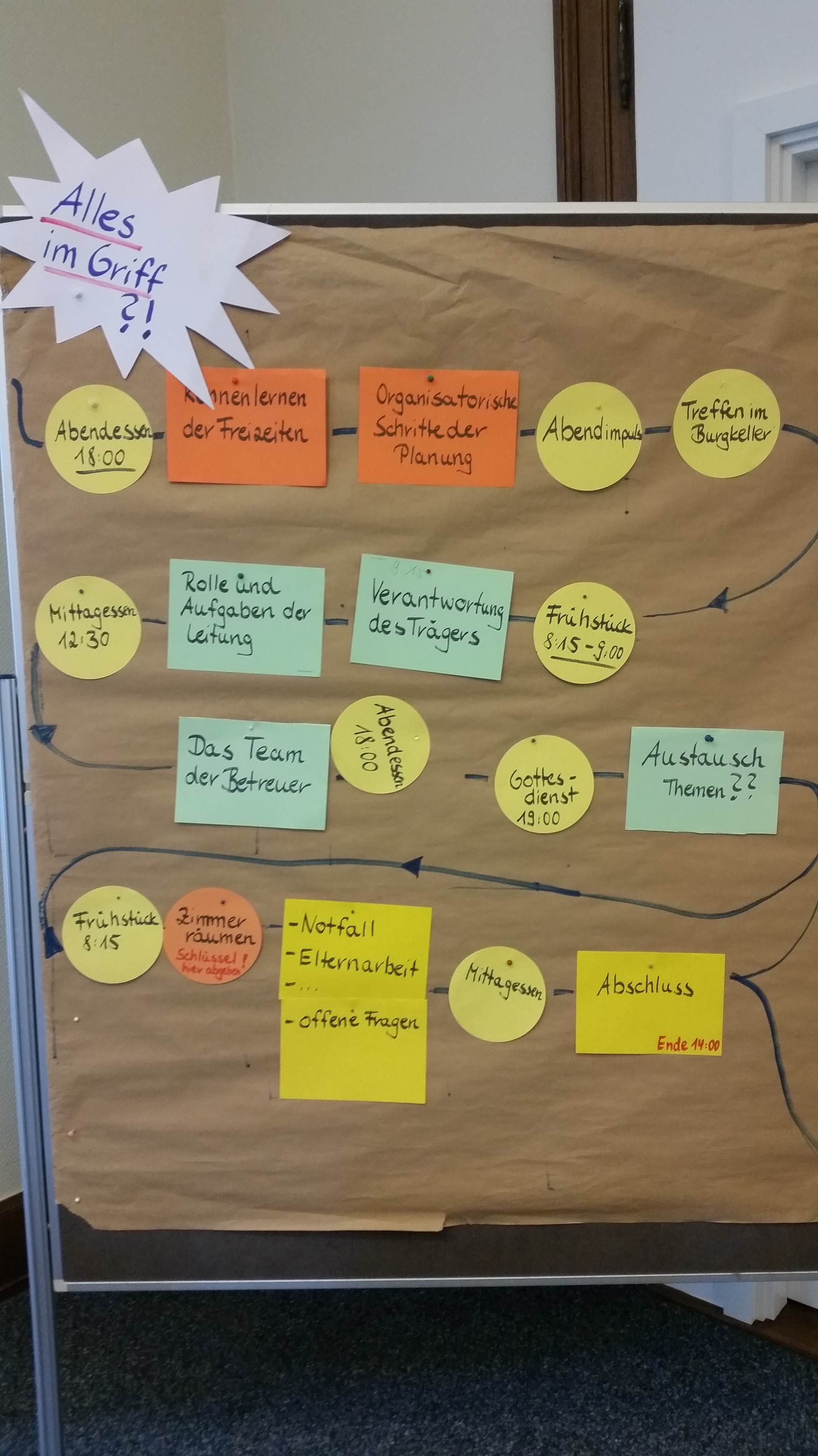 Expertenwissen wird ausgetauscht mit unterschiedlichsten Ferienlagern aus dem Bistum Münster. Themen wie z.B Arbeiten mit dem Träger oder Krisenmanagment werden von geschulten Mitarbeitern des Bistums vermittelt.