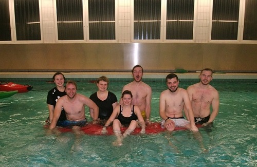 Für die Herausforderungen der anstehenden Kanutour an der Ardeche trafen wir uns am Freitagabend bei einem Kanuverein in Fröndenberg an der Ruhr um spezielle Techniken im Umgang mit Sportkanus im Schwimmbad zu erlernen.